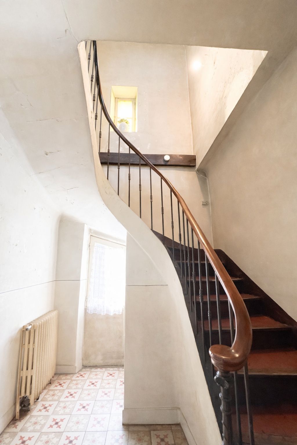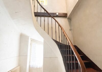 Dès l’entrée, un escalier structure le volume et annonce le potentiel de transformation.