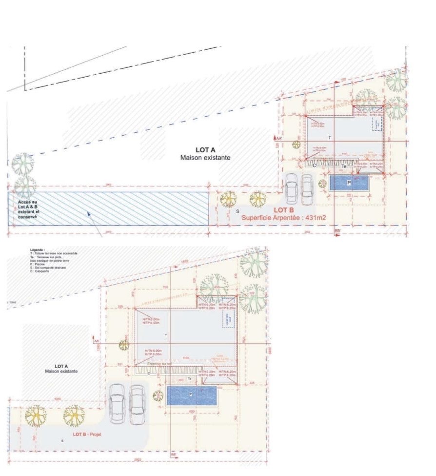 Vendu avec un permis de construire pour une villa contemporaine de 140 m² avec piscine.